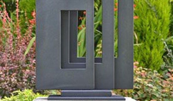 Diseño de escultura al aire libre en gris.