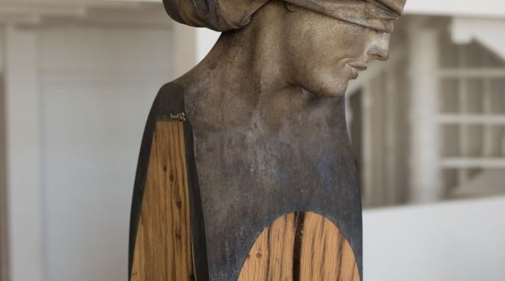 Edith, César Orrico, 2017, escultura en madera y bronce, 180 x 40 x 40 cm.