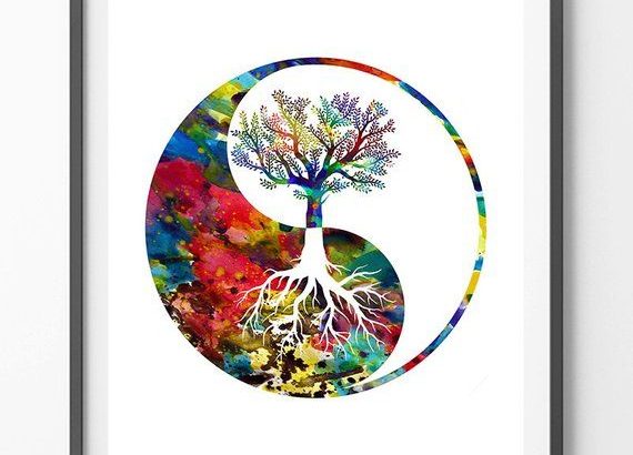 Impresión de acuarela de árbol Yin Yang, cartel de ilustración de símbolo de árbol yin yang, arte budista, arte boho, arte de meditación de yoga [NO 184] Es una copia en acuarela de mi pintura original. La impresión se entrega sin marco. La versión del lienzo está disponible aquí: