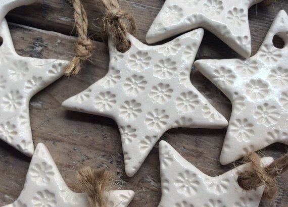 Bisque estrella de cerámica blanca hecha a mano única horneada y esmaltada Todos los esmaltes no contienen plomo. Mide aproximadamente 4.5 x 4.5 cm. Los corazones fantásticos en el árbol de Navidad, una boda, el Día de San Valentín o decoraciones los usan como etiquetas de regalo o un pequeño regalo.